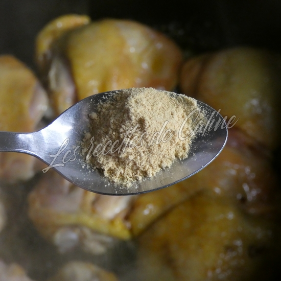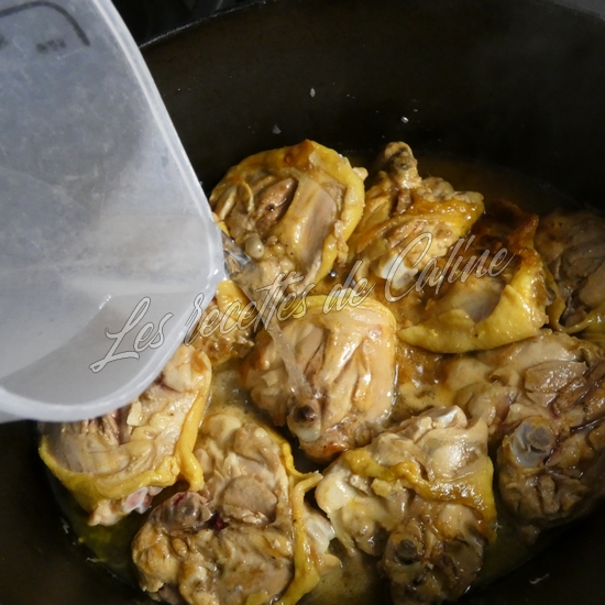 Lorsque le poulet est cuit (la viande doit se détacher facilement de l’os)