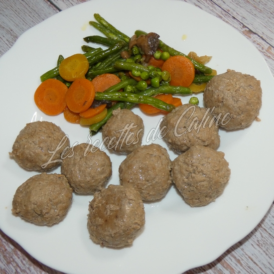Accompagnez les boulettes avec du riz aux légumes par exemple, pour ma part, c’était une poêlée de légumes.
