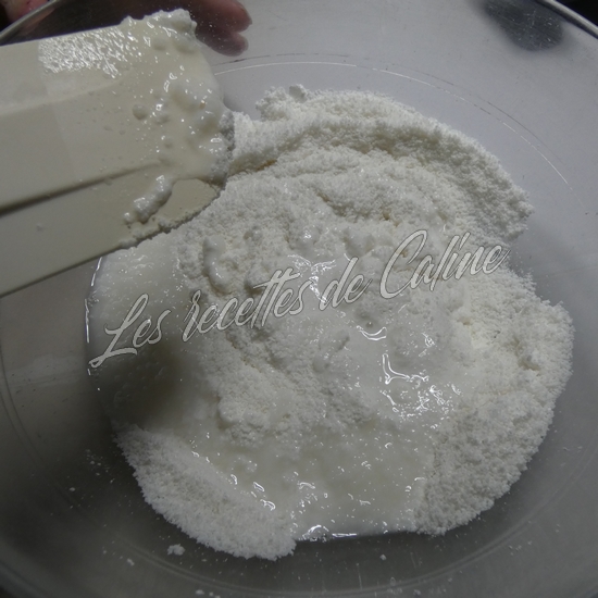 Versez la poudre de riz dans un grand saladier allant au micro-ondes. Ajoutez la fécule de maïs et le sel, puis mélangez. Ajouter l’eau bouillante et bien mélanger à nouveau.