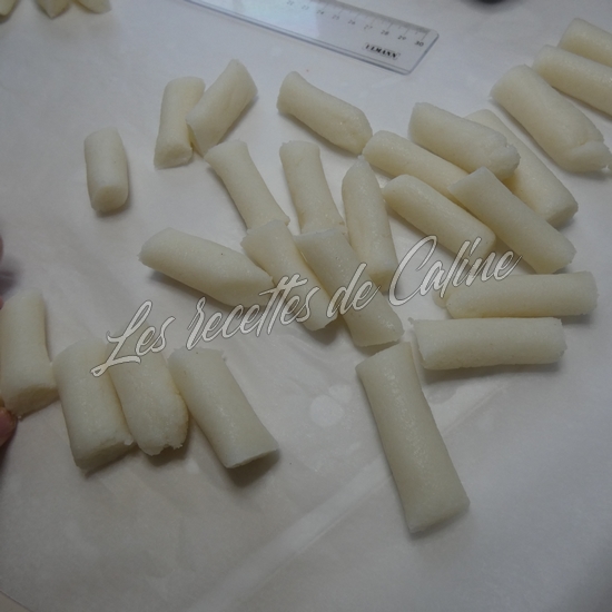 s’assèche. Formez de longs rouleaux ayant un diamètre de 1 cm avec chacun des morceaux, puis couper en tronçons de 5cm.
