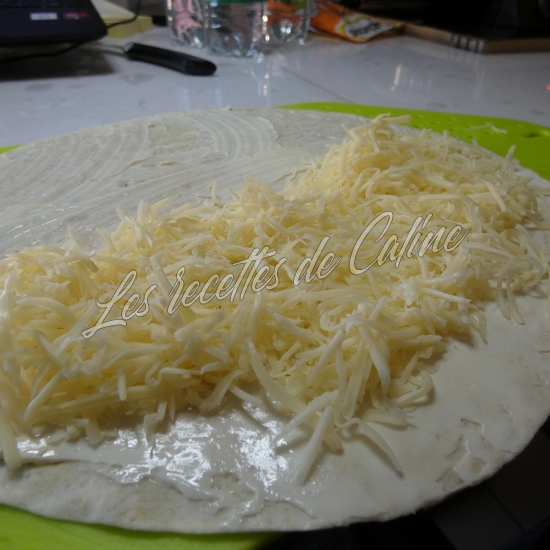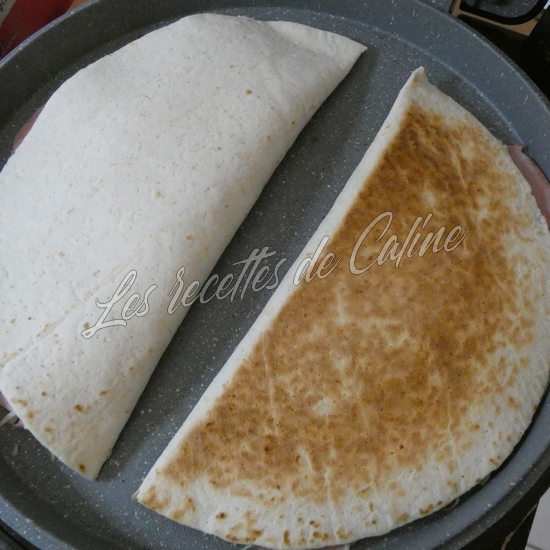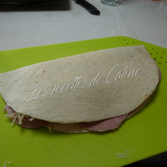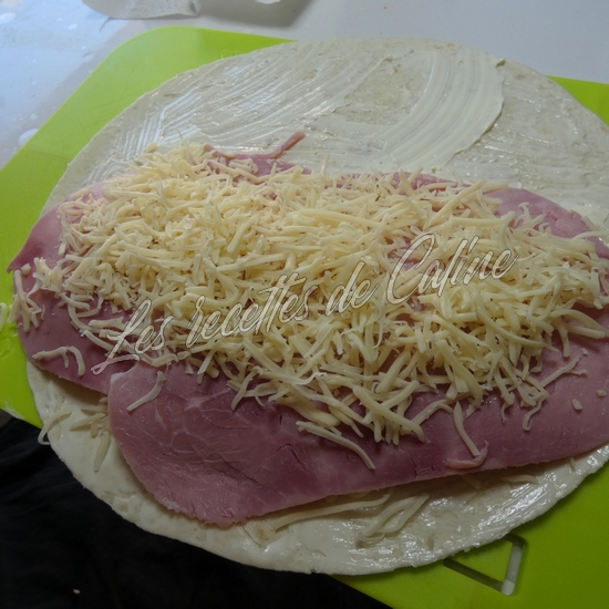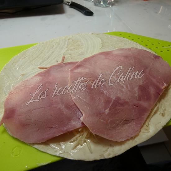 Mettre un peu de gruyère râpé sur la moitié du wrap et déposer le jambon sur le fromage râpé