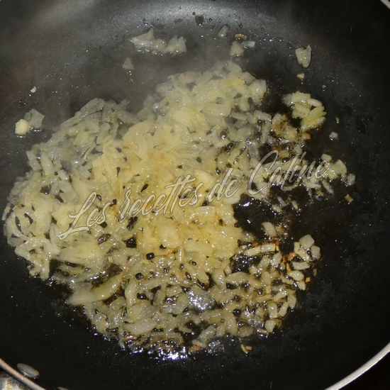 Pelez l’oignon et détaillez-le en petits dés et faites les colorer.