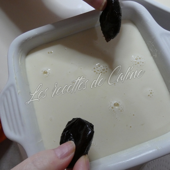 Déposez les pruneaux dans la pâte (ils tomberont au fond du plat, pas d’inquiétude)