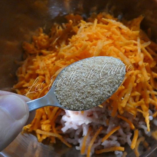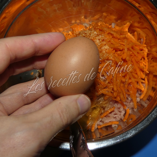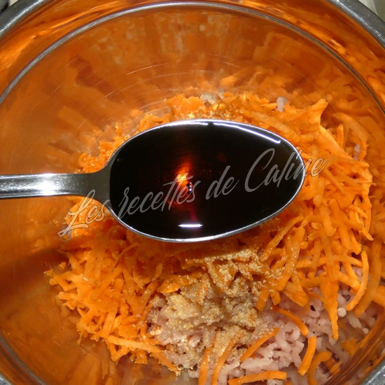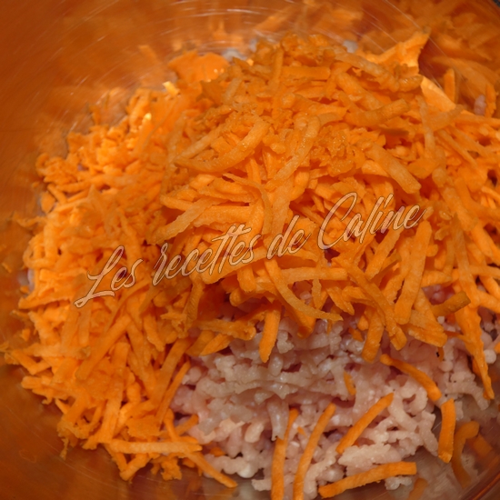 Hachez le porc si vous utilisez des morceaux, ajoutez y la carotte râpée, les
