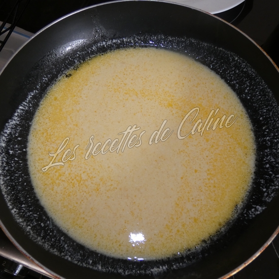Dans la poêle, versez le jus des oranges et la crème liquide puis