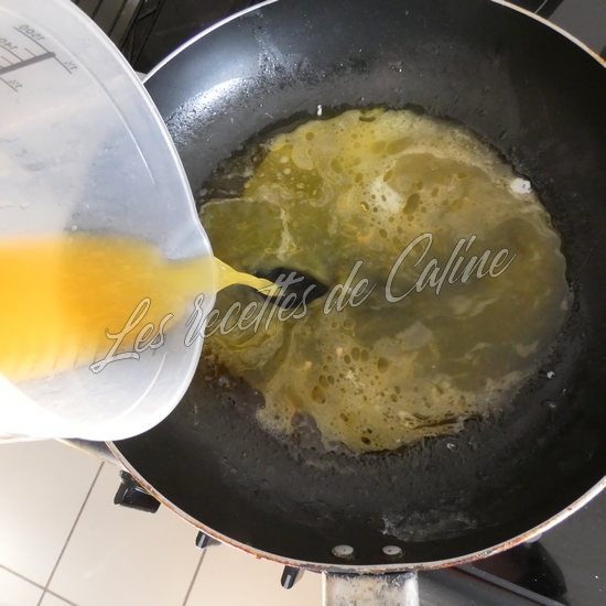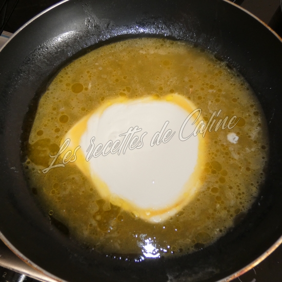 Dans la poêle, versez le jus des oranges et la crème liquide puis