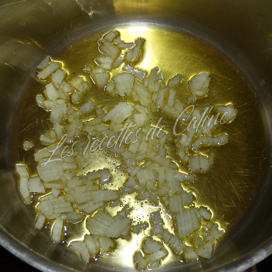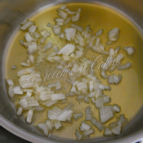 Épluchez et coupez finement l’oignon et faites le revenir dans une casserole avec l’huile d’olive.