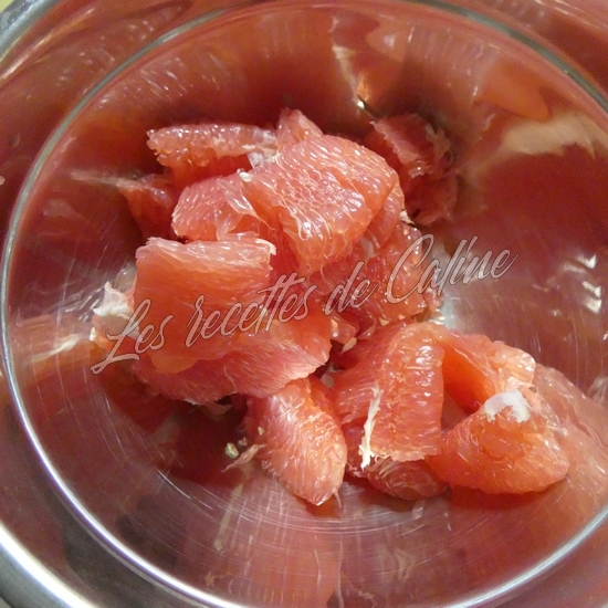 Réalisez des suprêmes d’un pamplemousse et déposez les dans le saladier.