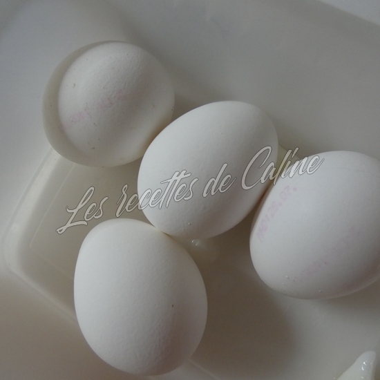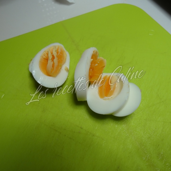 Faites cuire les oeufs, une fois cuits, plongez les dans l’eau glacée.