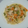 One pot pasta aux légumes, poulet, bacon et sauce moutarde