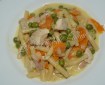 One pot pasta aux légumes, poulet, bacon et sauce moutarde
