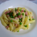 Salade de pâtes aux asperges, petits pois et jambon blanc