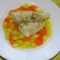 Poisson sur lit de carottes et pommes de terre